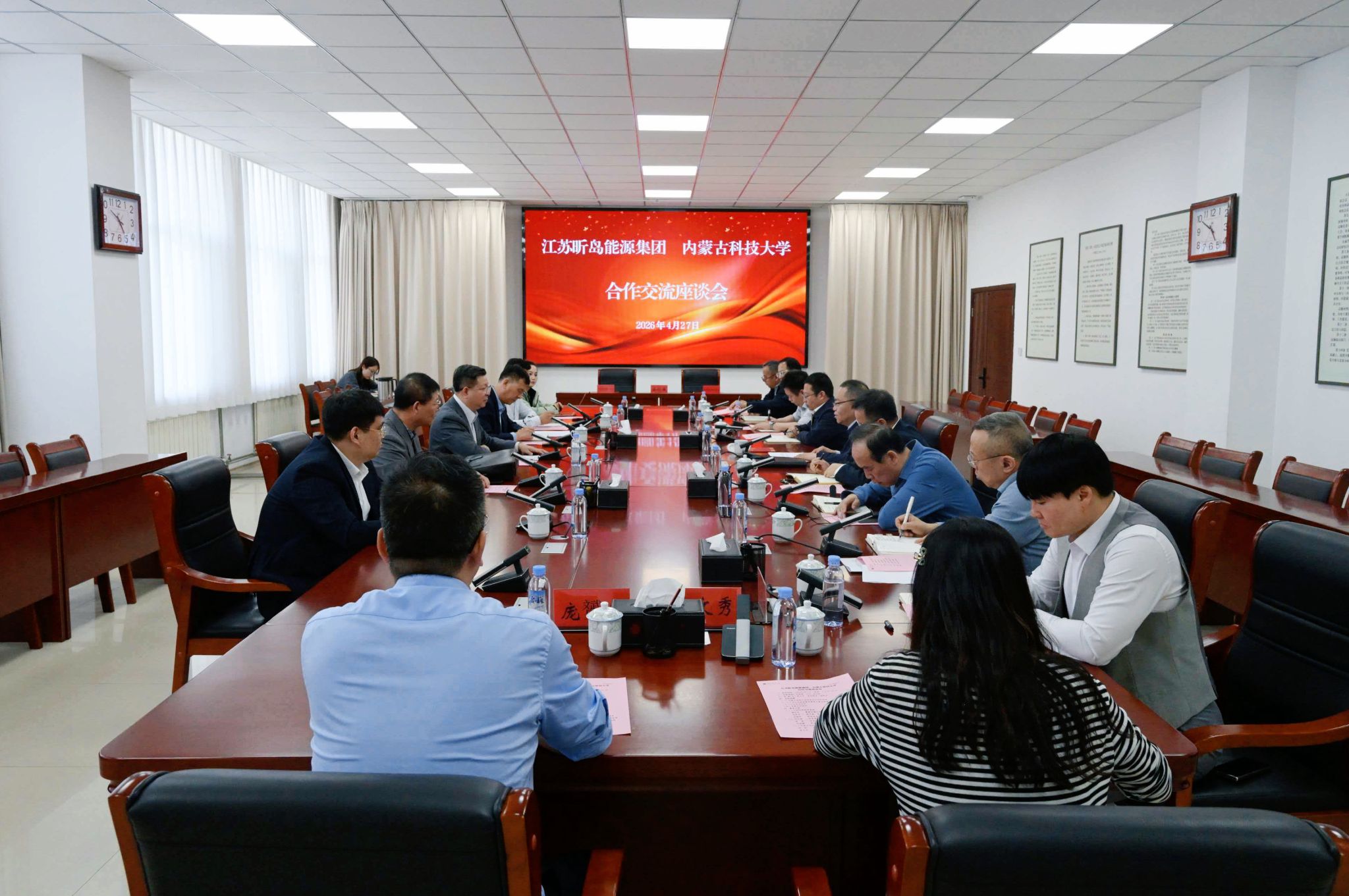 座谈会上,呼和代表学校对谭启帅一行的到访表示欢迎,并详细介绍了学校的办学发展历程、学科建设情况及科研创新成果。他说,内蒙古科技大学始终立足区域发展大局,主动服务地方经济社会发展,持续深化产教融合、校企合作,期待与昕岛能源集团在人才培养、科技创新、成果转化等方面开展务实合作,共同服务国家能源战略和区域绿色低碳转型。